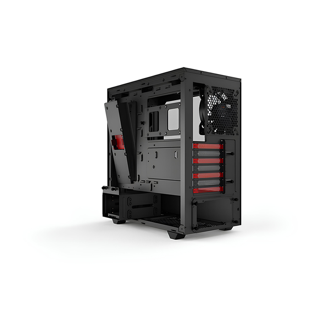 - Panneau latéral en verre trempé et éclairage rouge interne pour une esthétique soignée et personnalisée.